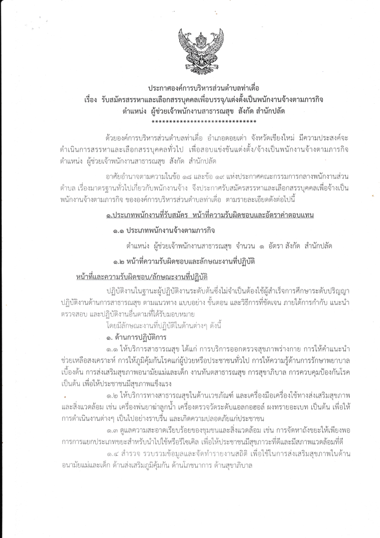 ประกาศองค์การบริหารส่วนตำบลท่าเดื่อ เรื่องผลการสอบคัดเลือกเป็นพนักงานจ้างตามภารกิจ ตำแหน่ง ผู้ช่วยเจ้าพนักงานสาธารณสุข สำนักปลัด